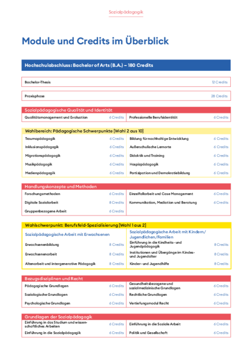 Durch die fokussiert sozialpädagogische Ausrichtung qualifiziert dich dieser Studiengang, Erwachsene oder Kinder, Jugendliche und Familien in ihrer Entwicklung einfühlsam zu begleiten. Du bestimmst deine Schwerpunkte und methodischen Ansätze, wie beispielsweise Medienpädagogik, Traumapädagogik oder Hospizpädagogik.